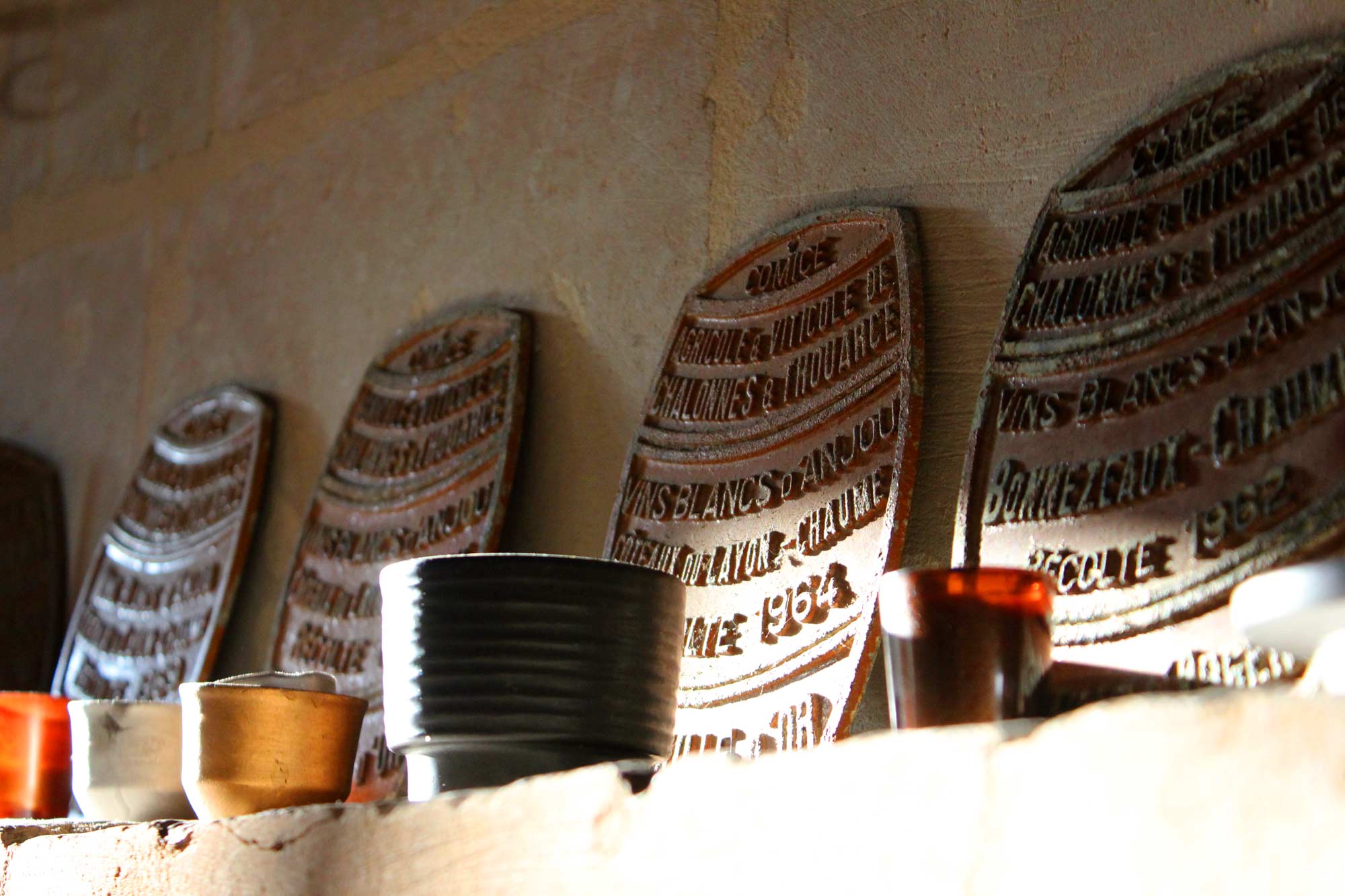Témoins de l'histoire vitcole du gîte, les médailles remportées par les vins du Château de la Guimonière ornent la cheminée du séjour.